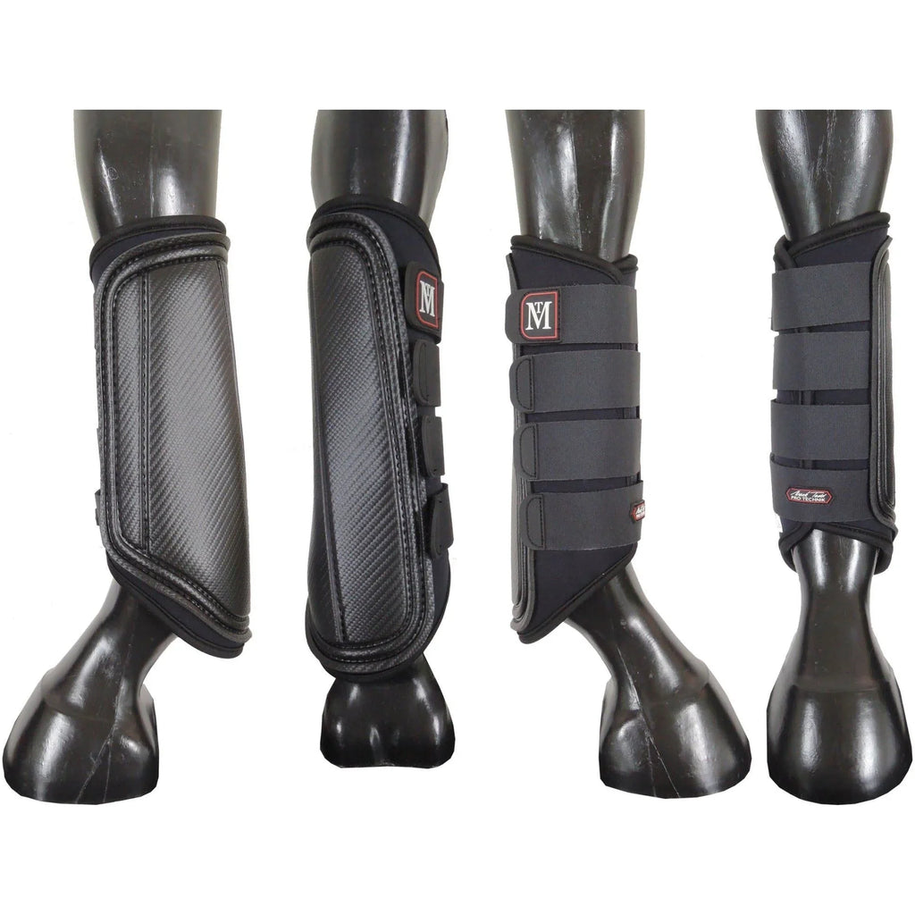 Carbon design exercise boots with reinforced strike pad for additional protection. Hook and loop fastenings. Small-Medium 3 straps, Large 2 straps.