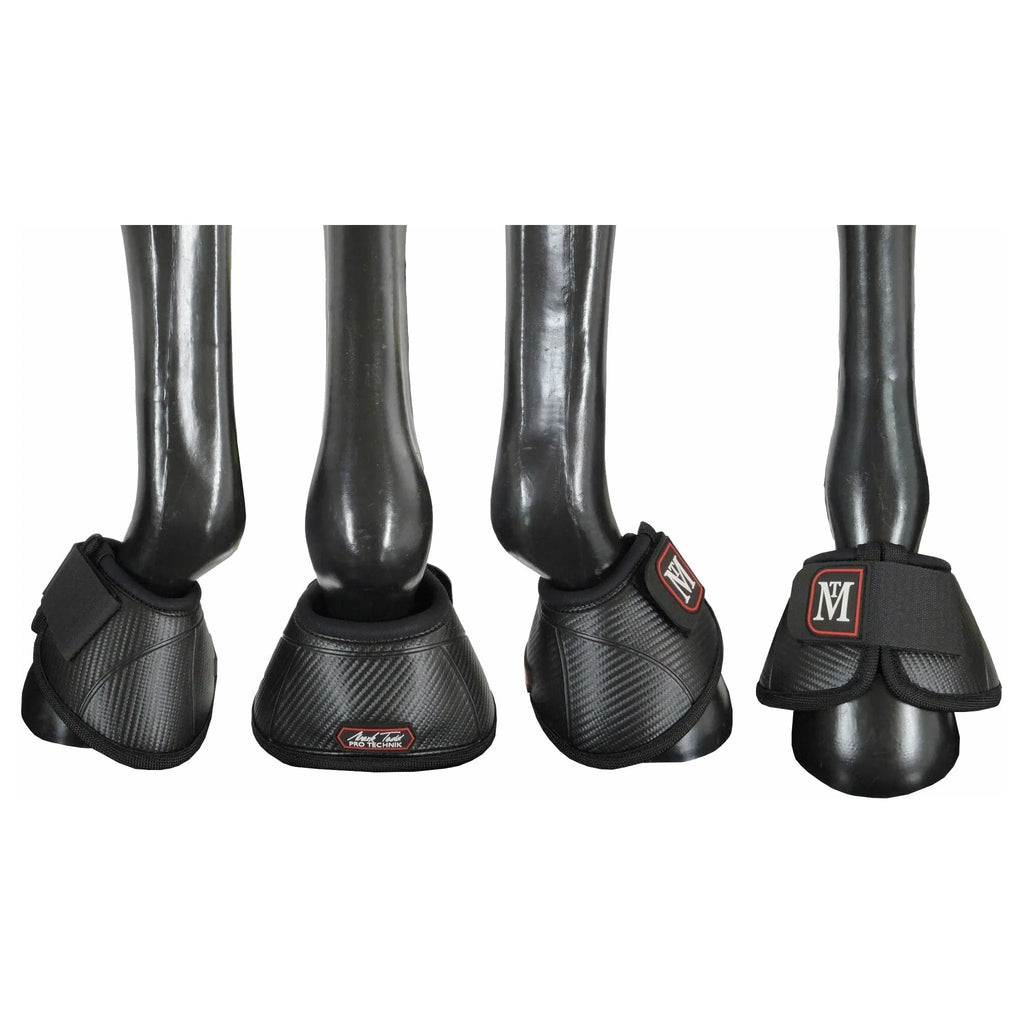 Carbon design high density over reach boots designed to fit the horses hoof snugly without turning, providing maximum protection against over reaching. Double overlap hook and loop fastenings.