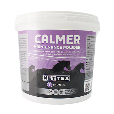 Nettex Calmer Maintenance Powder encourages wellbeing and concentration and can be fed to horses or ponies to help reduce stress related symptoms such as nervousness, excitability, apprehension and irritability.