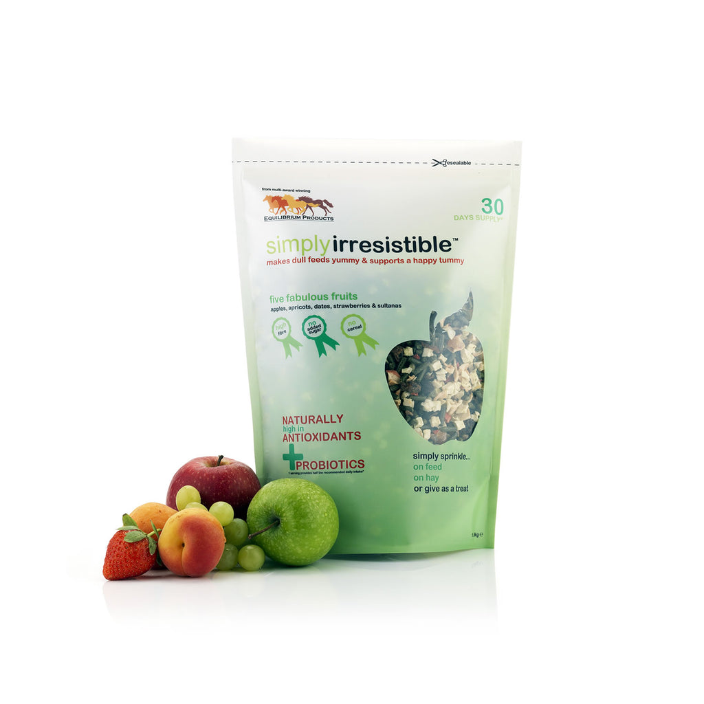 The healthy, handy, versatile horse treat. Can be sprinkled on top of hard feed, chaff or forage to add flavour and variety to dull everyday feeds. Mix with medication, wormers or supplements to make them more palatable and aid digestion. Ideal for good doers or restricted diets, to tempt fussy eaters and to put in treat balls. A delicious bland of natural fruits, including apple, apricot, strawberry, dates and sultanas. High in fibre and cereal free, with no added sugar, suitable for all horses and ponies including those prone to laminitis. Rich in anti-oxidants, with added probiotics to support a healthy gut. Based on an average serving a 1.5kg pack will last 30 days. Manufactured uder the BETA NOPS scheme.