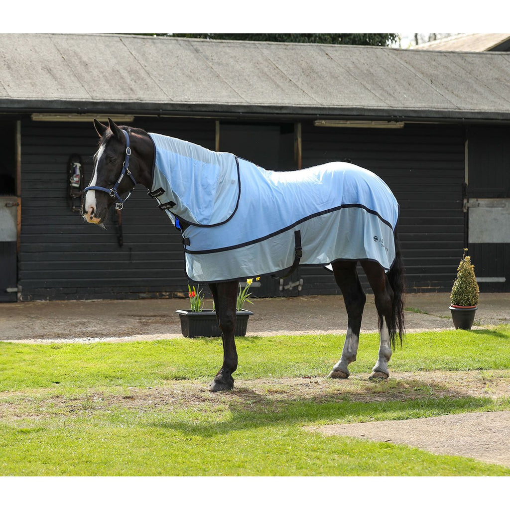 Water-activated cooling rug that is tested to reduce the horse's temperature by up to 5.9 degrees centigrade, without getting them soaking wet. Ideal for cooling horses on the go, at shows and events, or when access to running water is limited. *Testing conducted on horses in the stable in temperatures ranging between 28-30 degrees centigrade, and horses exercised for 20 minutes and cooled directly afterwards. Rug comes with a detachable neck made from the same material so even more cooling for the horse!