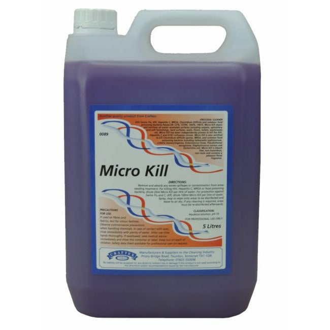 Micro Kill has been assessed for virucidal activity following test methods such as BS EN 14476 and BS EN 14675. Results show it is effective against a range of viruses such as the H1N1 influenza virus, Norovirus, Hepatitis B, Hepatitis C, HIV and the Ebola virus.