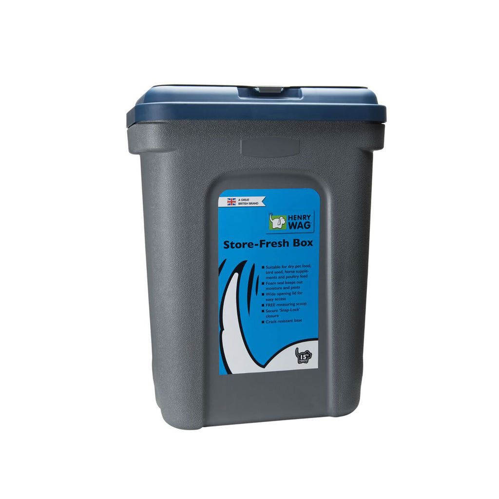 Perfect for storing dry pet food, bird seed, horse supplements and poultry feed. It has a wide opening easy access lid which is fitted with a foam seal to keep food fresh. Includes a free measuring scoop which fits inside the lid, great for easy food delivery and portion size control. The lid has a snap lock closure to prevent easy animal access to the food. All parts are made from tough, crack resistant plastic.