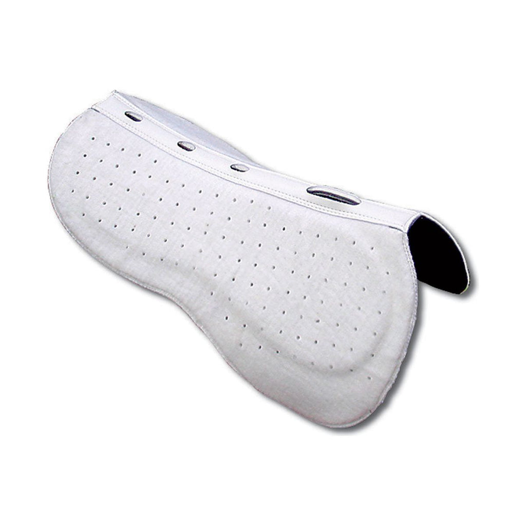 This Wedge Saddle Pad absorbs concussion, reduce impact and lift the weight off the spine and rib cage. All this with a gradual rise toward the back. Favoured by jumpers and those who wish to move forward with the horse Length 23", width 22", tapering to 15".