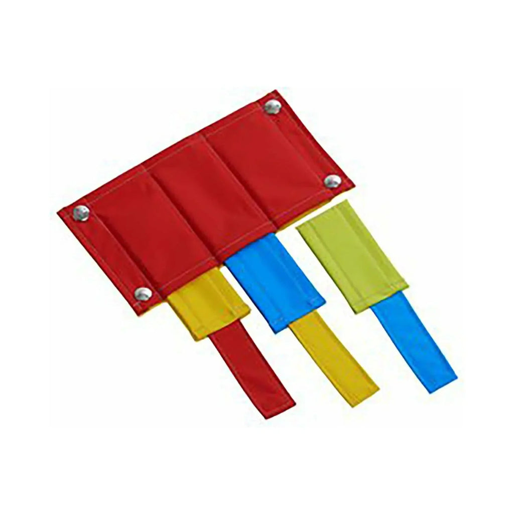 Task with three pockets. The smaller pockets with a tail can be inserted into the bigger pockets from both ends. To be used in conjunction with the activity mat.