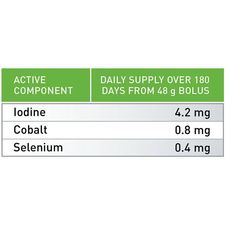 • Delivers full daily requirement of iodine, cobalt and selenium
