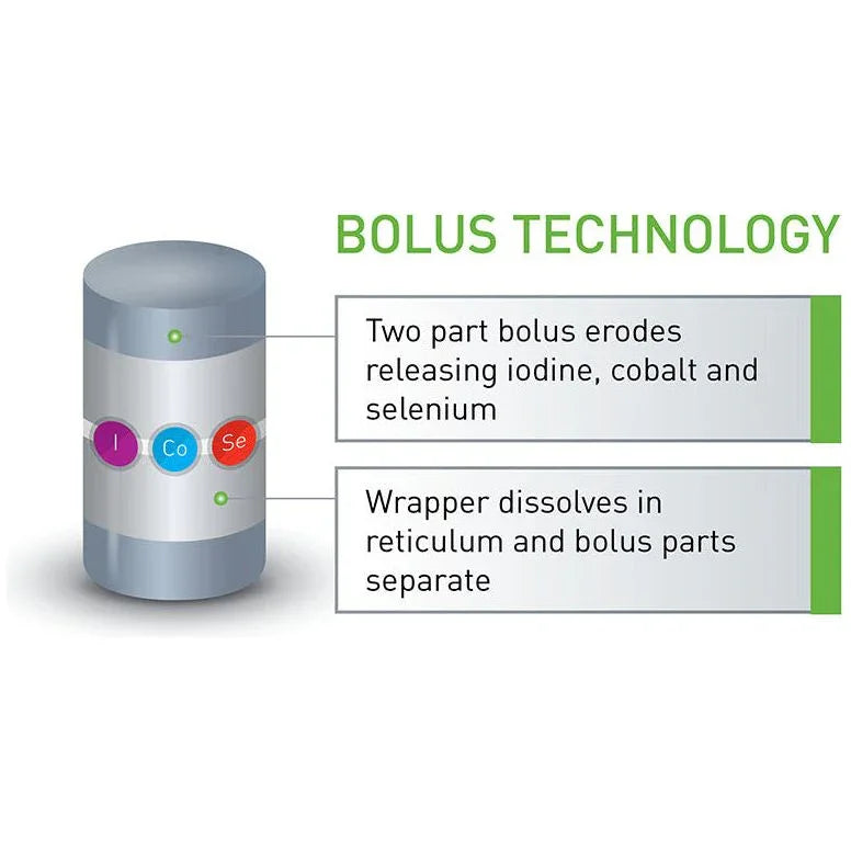A sustained release bolus containing iodine, cobalt and selenium. Intended for adult sheep, gimmers and hoggs with a liveweight over 40 kg.