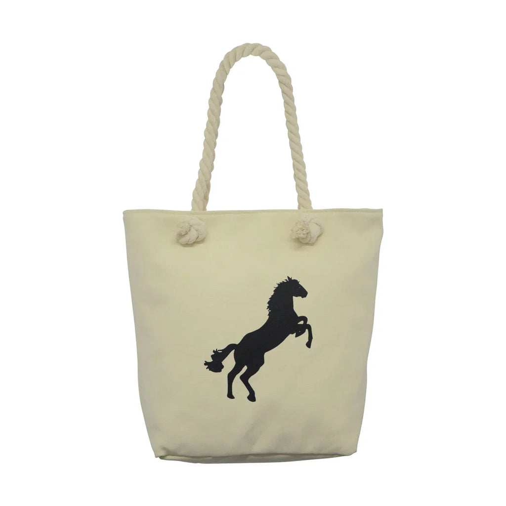 These strong canvas bags are perfect for shopping, carry brushes, travelling, going to work… just about anything! The zip top ensures your belongings are kept safe and secure. Thick rope handles add style and comfort to this must-have horse design bag!
