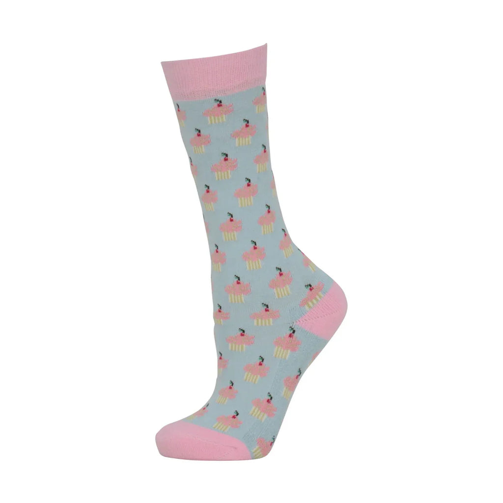 hyfashion cupcake socks (pack of 3) blue tint/pink icing